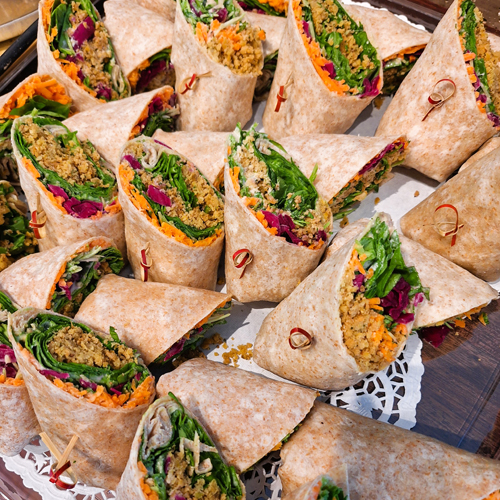 Customize a platter that suits you by choosing three from our sandwich & wrap platter on the right. Price includes only one chicken/turkey option (1/3 of total number).