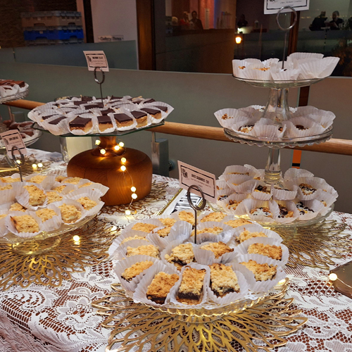 Mixed Berry Parfait (Greek yogurt, house made berry compote and gluten free house made granola), cheddar spinach scones and Planet Bean coffee. Can also be served as a “make your own” parfait buffet.
